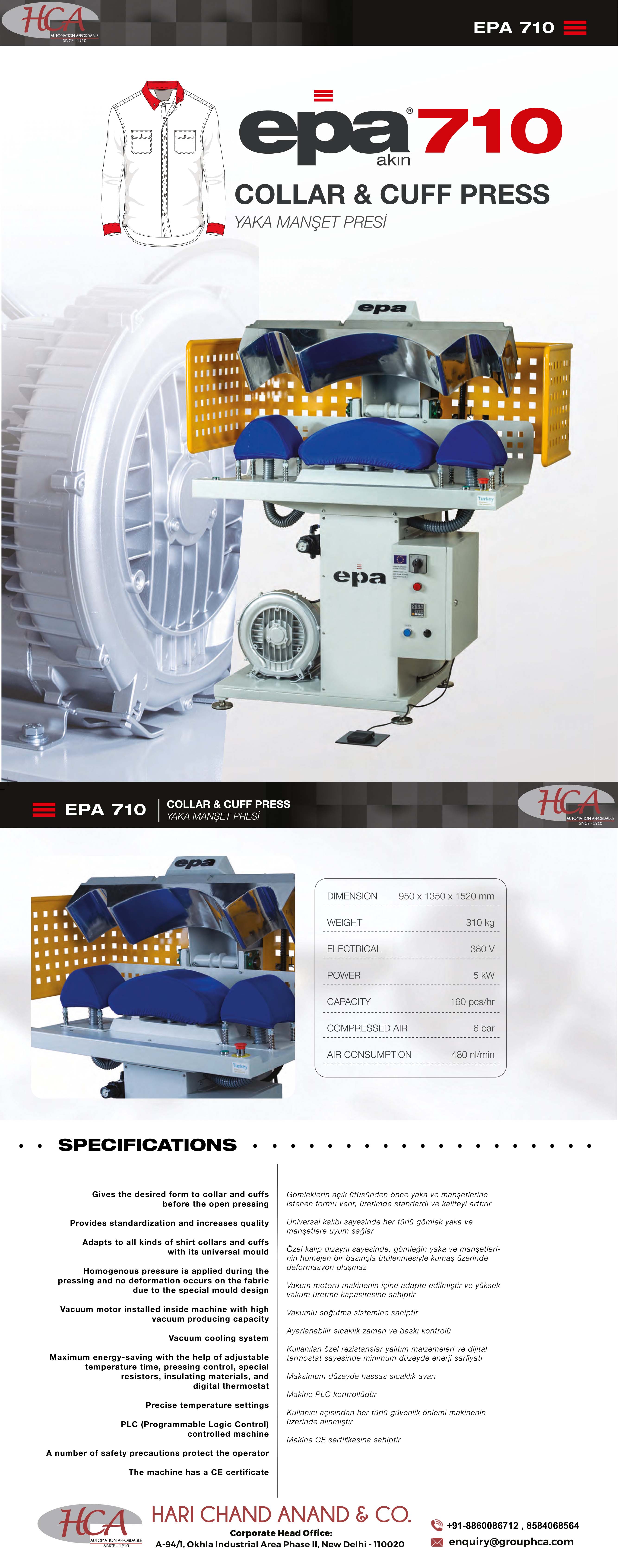 EPA 710 – Industrial Collar & Cuff Press Machine
