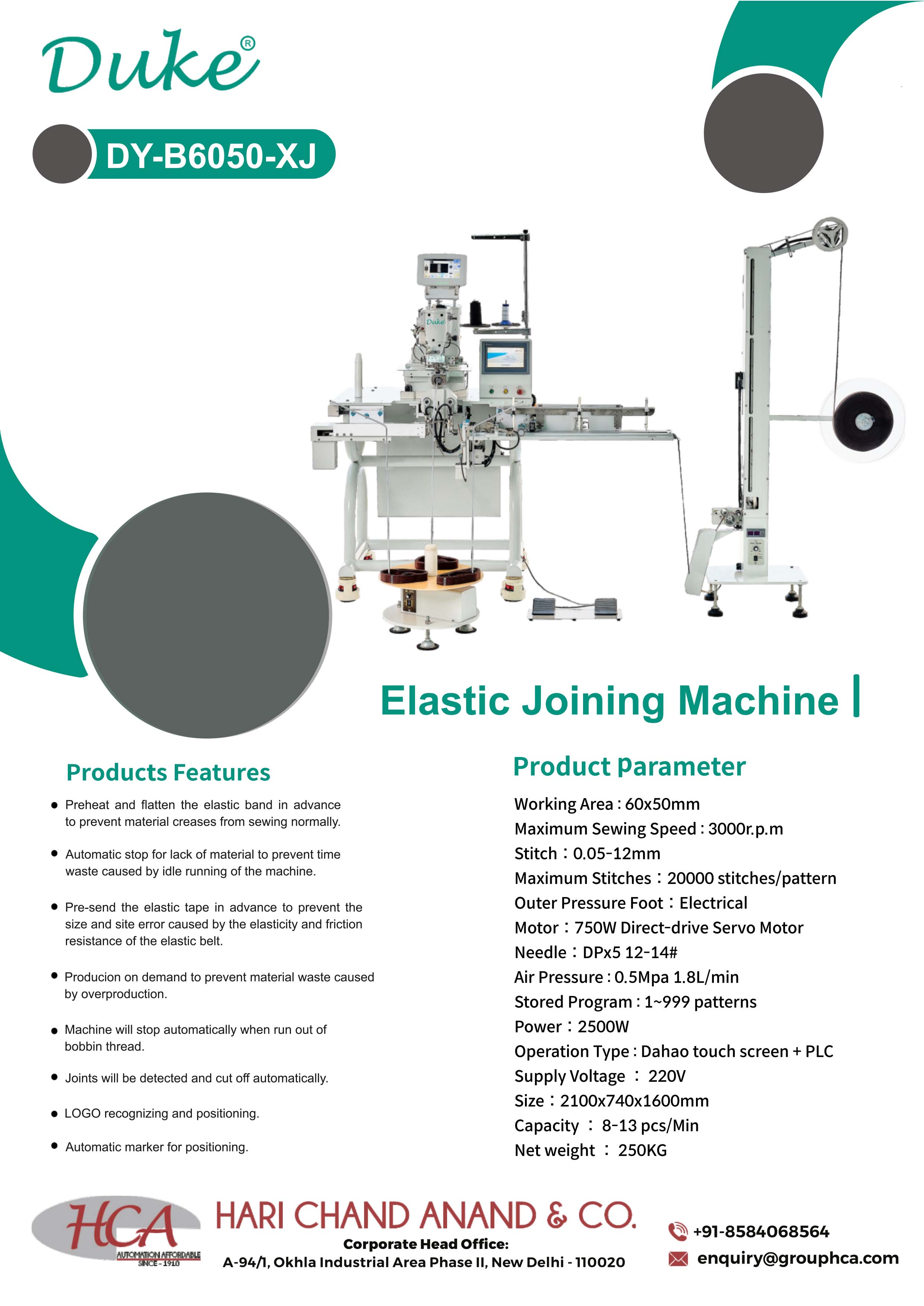 The Duke DY B6050-XJ Elastic Joining Machine is engineered to deliver high-precision and high-efficiency elastic band joining for garments, underwear, sportswear, and other stretch-based products. Designed with advanced automation capabilities, the machine ensures consistent quality by preheating the elastic, detecting joints automatically, and preventing production errors.