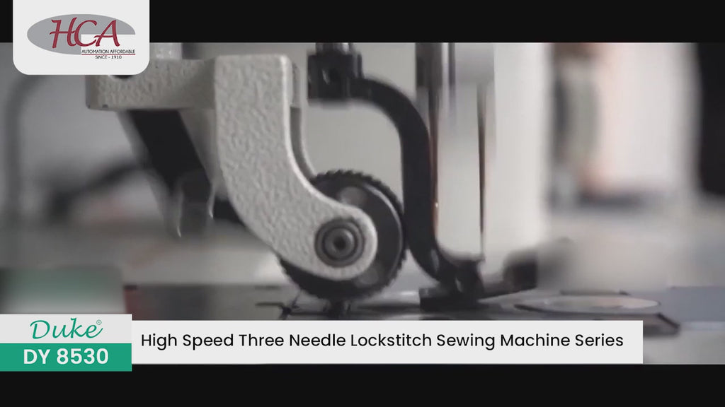 The Duke DY 8530 High-Speed Three Needle Lockstitch Sewing Machine is designed for heavy-duty industrial use, offering more solid and aesthetically refined stitches compared to traditional 3-needle chain stitch machines.