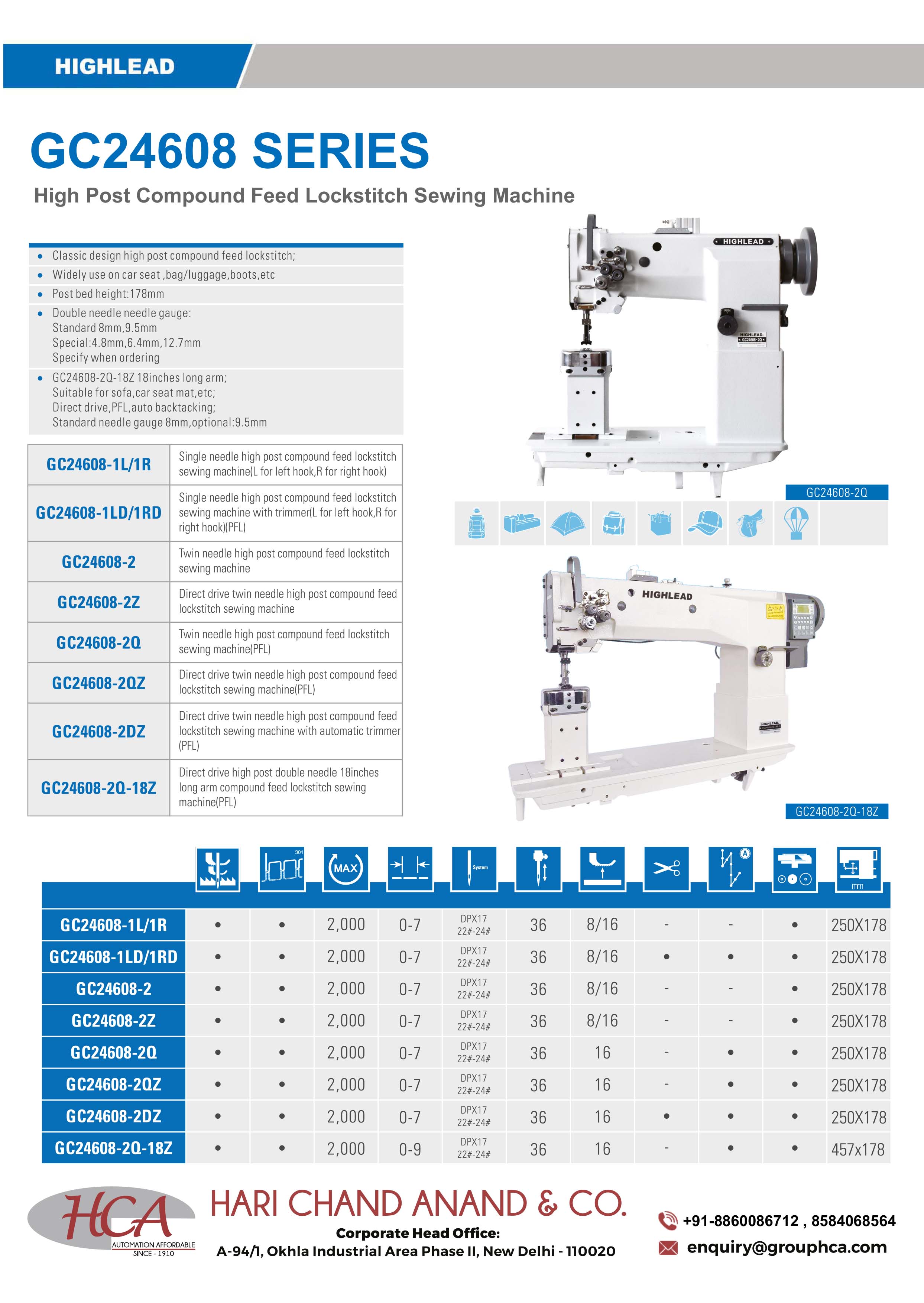 GC24608 Series | High Post Compound Feed Lockstitch Sewing Machine