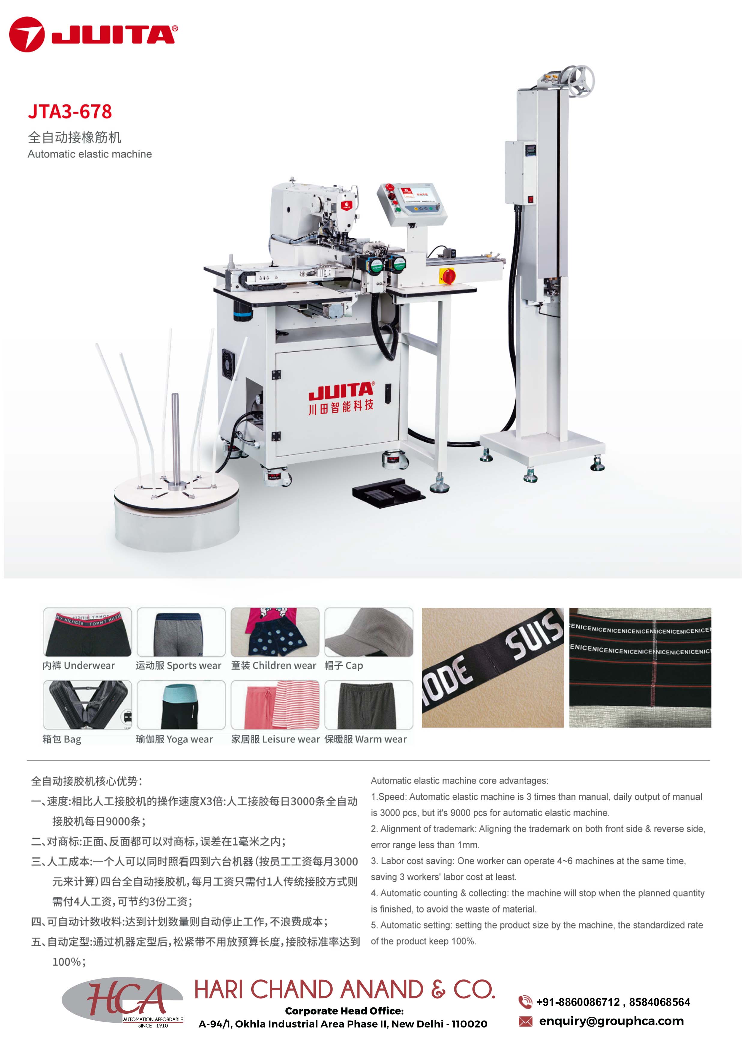 The HCA Juita JTA3-678 Automatic Elastic Machine sets a new standard in elastic attachment automation. Engineered for precision, speed, and reliability, it delivers up to 9,000 pieces per day, making it three times faster than manual production.