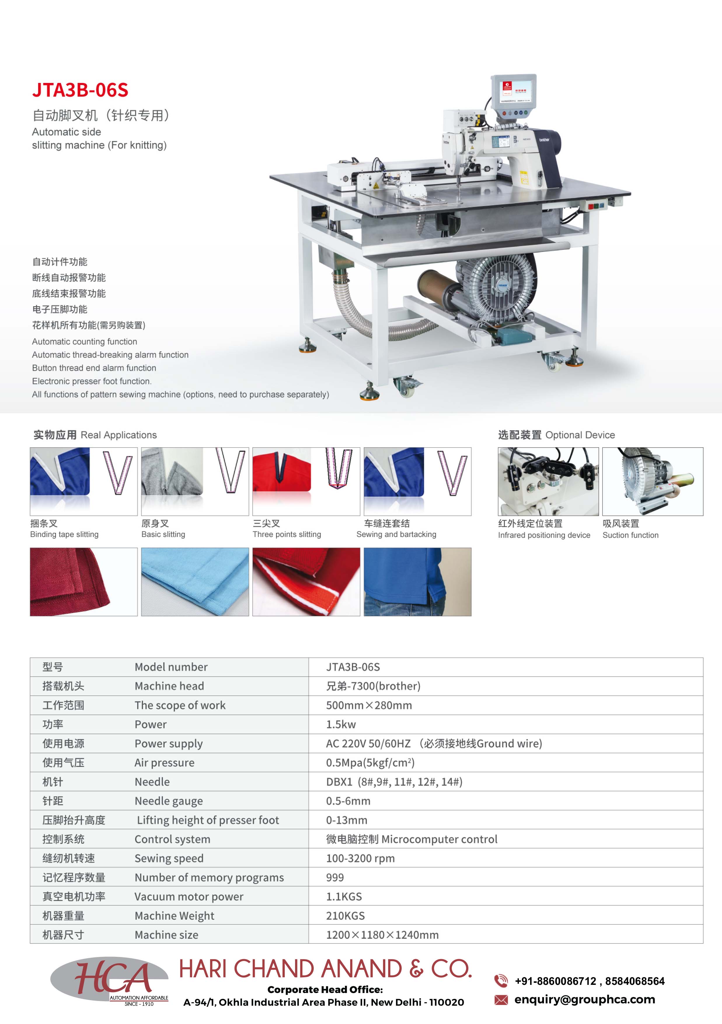 The Juita JTA3B-06S is an advanced automatic side slitting machine designed specifically for knitwear processing. Built with high precision, intelligent automation, and powerful performance, it ensures clean, consistent, and efficient side slitting for knitted fabrics. Equipped with a microcomputer control system, electronic presser foot, and automatic alarm functions, this model enhances productivity while minimizing manual intervention.